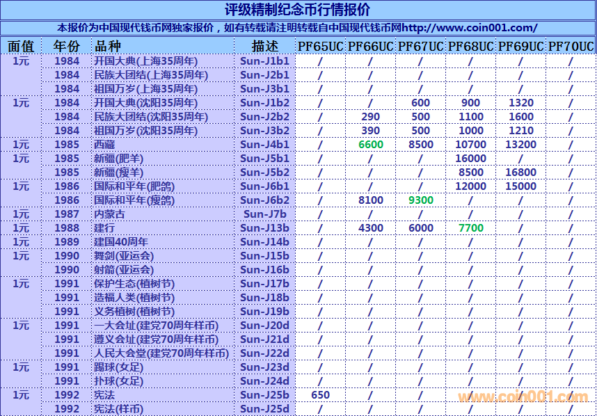 評級普通(精制)紀念幣交易