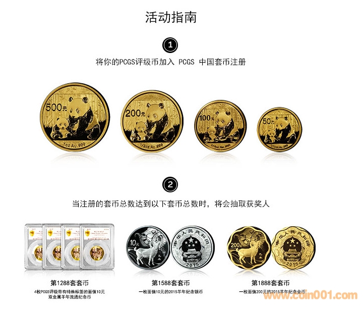 我們對(duì)全新改版、兼容并包的PCGS套幣注冊非常滿意,為慶祝套幣注冊合并,我們推出了PCGS中國套幣注冊“沖擊1888”抽獎(jiǎng)活動(dòng)。您只需在中國套幣注冊中添加套幣,即有機(jī)會(huì)贏取由PCGS評(píng)級(jí)的錢幣。目前已注冊套幣共772套。注冊第1288套套幣的會(huì)員將獲得一套四枚的10元雙金屬羊年紀(jì)念幣,帶春夏秋冬四季標(biāo)簽;注冊第1588套套幣的會(huì)員將獲得一枚面值10元的羊年紀(jì)念銀幣,而注冊第1888套套幣的會(huì)員的獎(jiǎng)品為面值200元的羊年金制紀(jì)念幣!快來贏取心動(dòng)大獎(jiǎng)吧!活動(dòng)詳情請點(diǎn)擊此處。