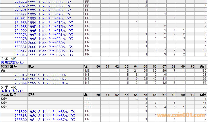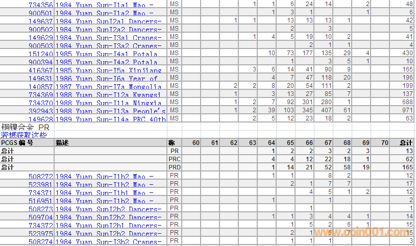 PCGS硬幣評級數(shù)量報告 ..