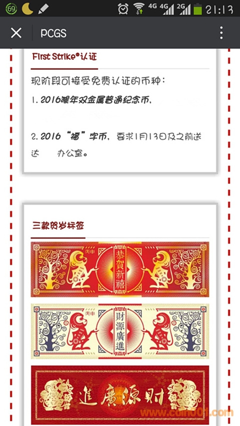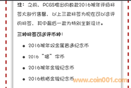 PCGS設(shè)計出三種賀歲標(biāo)簽,無數(shù)量限制,適用于:2016猴年雙金屬普通紀(jì)念幣,2016“?!弊謳?,2016猴年金銀紀(jì)念幣,2016熊貓金銀紀(jì)念幣四種幣。