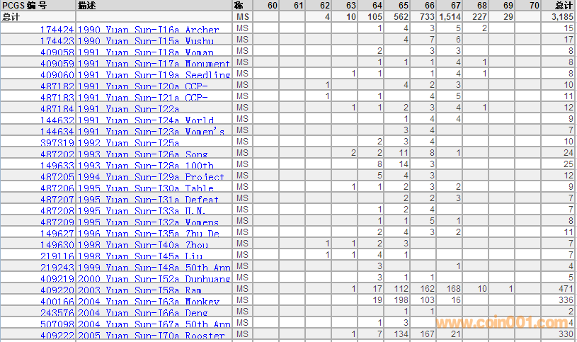 PCGS硬幣評(píng)級(jí)數(shù)量報(bào)告 ..