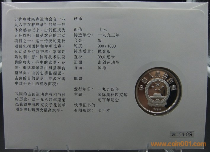 中國1993年擊劍10元精 ..