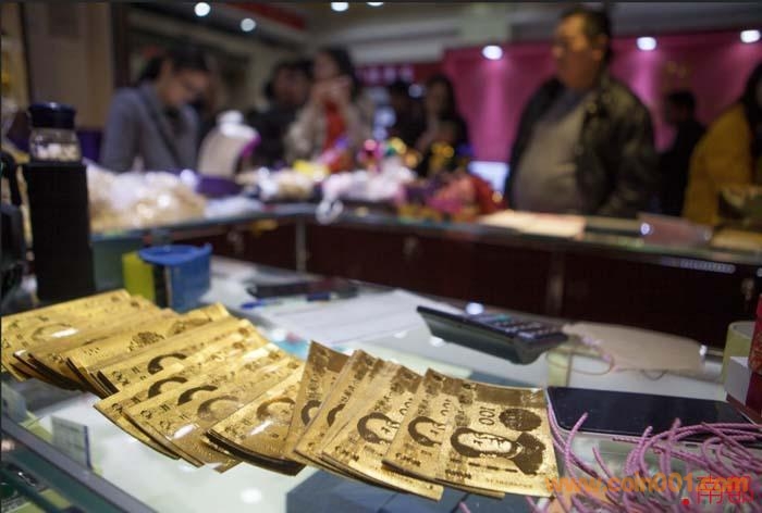 金光閃閃,其圖樣、大小與百元人民幣無異,還有證書驗明身份,“含金量999‰”。不過,你還真相信這是金箔做的?