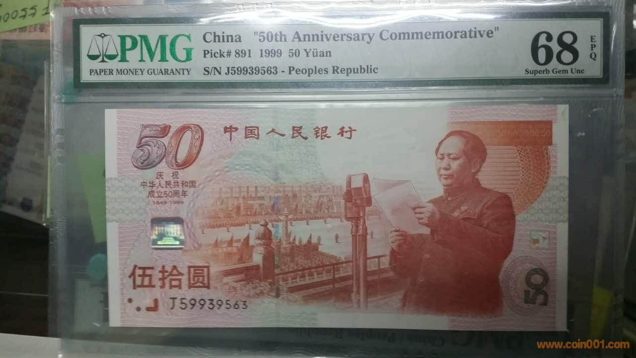 1990年建國鈔,伍拾圓,J59939563,PMG,68,EPQ 1800元