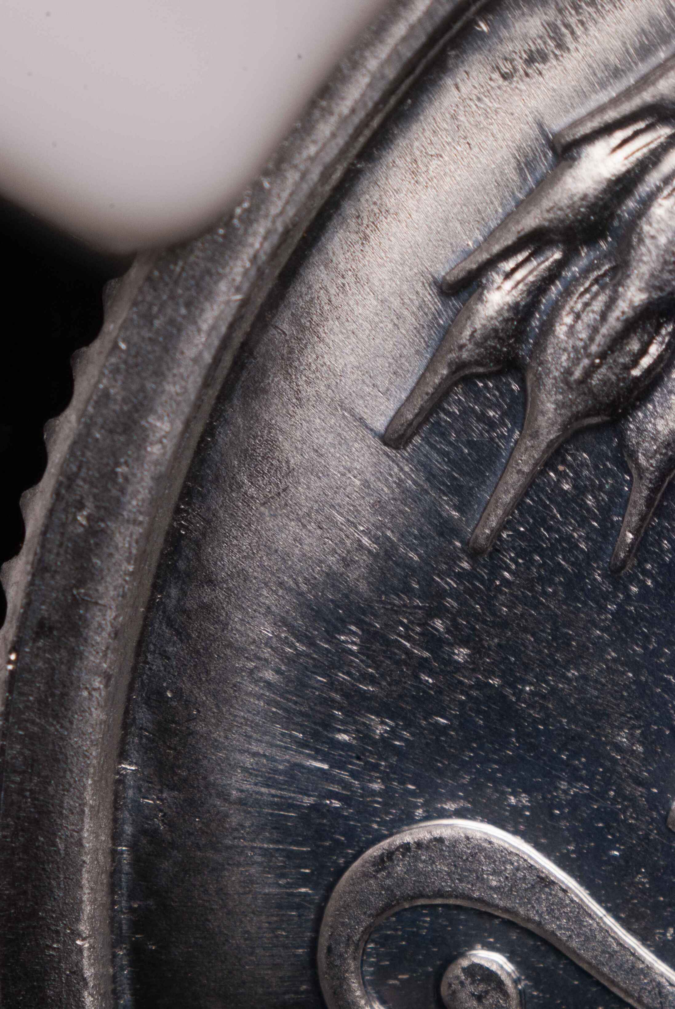 何兄,感謝您拍攝的高清圖片!您圖片展示的痕跡我很難解釋,首先我不認(rèn)為是晚期工作模導(dǎo)致的,這種情況首先出現(xiàn)在1981年精制分幣且最為明顯,考慮到1981年精制分幣是精制分幣的起始年份也是中國(guó)發(fā)行的第一枚精制分幣,因此有可能在制造工藝上存在瑕疵,1982年1983年精制分幣也出現(xiàn)類似的情況但是情況要好于1981年精制分幣,1984年上海版精制分幣就明顯改觀。
