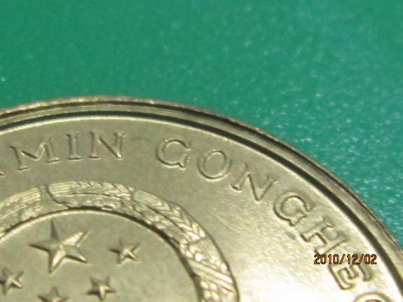 引用 引用第3樓凡品于2010-12-03 08:01發(fā)表的 : A.5角和1元的邊齒為最大疑問處,ZHONG HUA REN MING GONG HE GUO 的上邊有明顯的多出一道邊圈 B.1元硬幣的中文 “中華人民共和國”凹凸感不強(qiáng). 純屬個(gè)人看法,請(qǐng)大家指正
