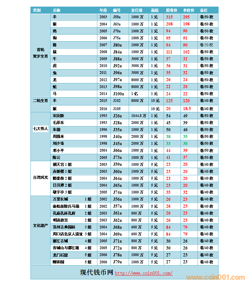 2016.3.15流通紀(jì)念幣報(bào)價