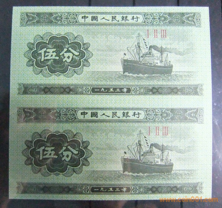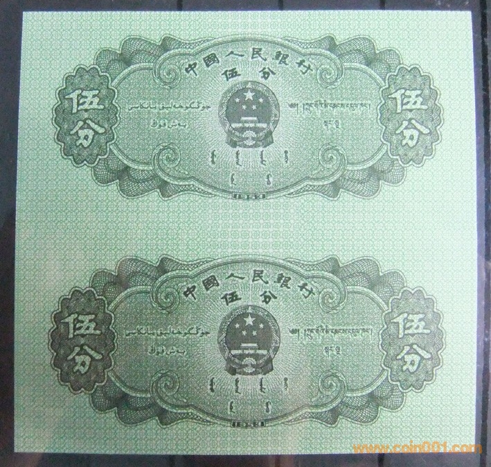 第二套人民幣5分2連體 ..