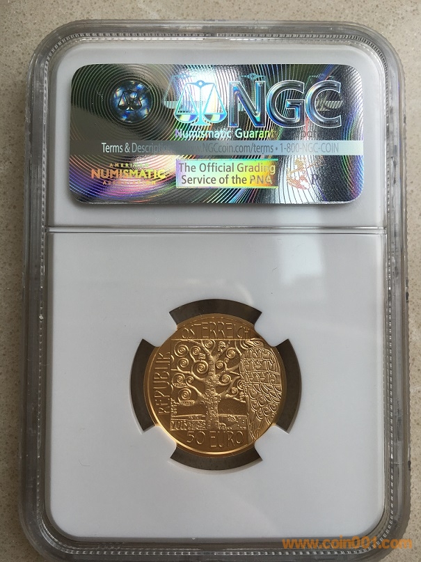 奧地利“克里姆特和他的女人們”金幣系列于2012年開始發(fā)行,預(yù)計共發(fā)行五枚,分別按發(fā)行順序在每枚幣上銘刻克里姆特名字的五個字母:K-L-I-M-T。該系列首枚主題為《阿黛爾?布洛赫?鮑爾的肖像》紀(jì)念金幣,該著名畫作在2006年6月被美國一位富有的收藏家以1.35億美元的天價收入囊中,成為當(dāng)時世界上最昂貴的油畫。
