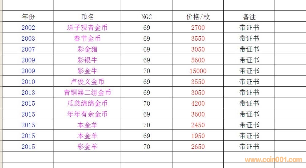 【5月3新貨金幣】送子觀音、春節(jié)金幣、彩金豬、彩金牛、盧俊義金幣、青銅器金幣、瓜瓞綿綿金幣、年年有余金幣、本金羊、彩金羊