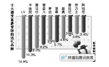 此外,胡潤此次還首度發(fā)布了“十大最受富豪青睞的送禮品牌”,茅臺也是榜上有名,位列第五。