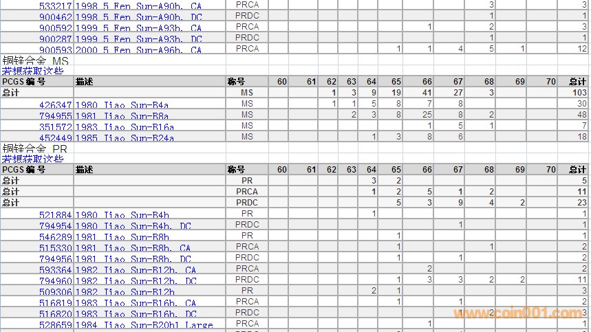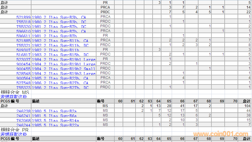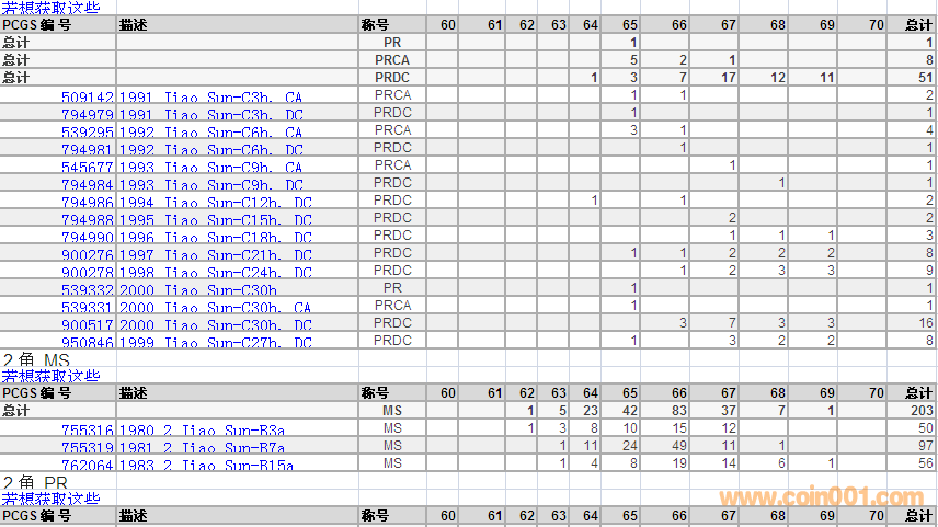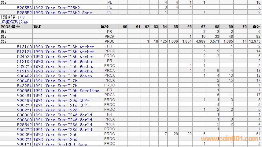 PCGS硬幣評級數(shù)量報告 ..