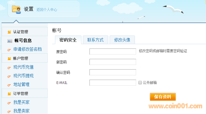 點擊網(wǎng)站門戶頂部導航欄的“個人中心”,左側菜單欄當中“認證管理-賬號信息-密碼安全”。