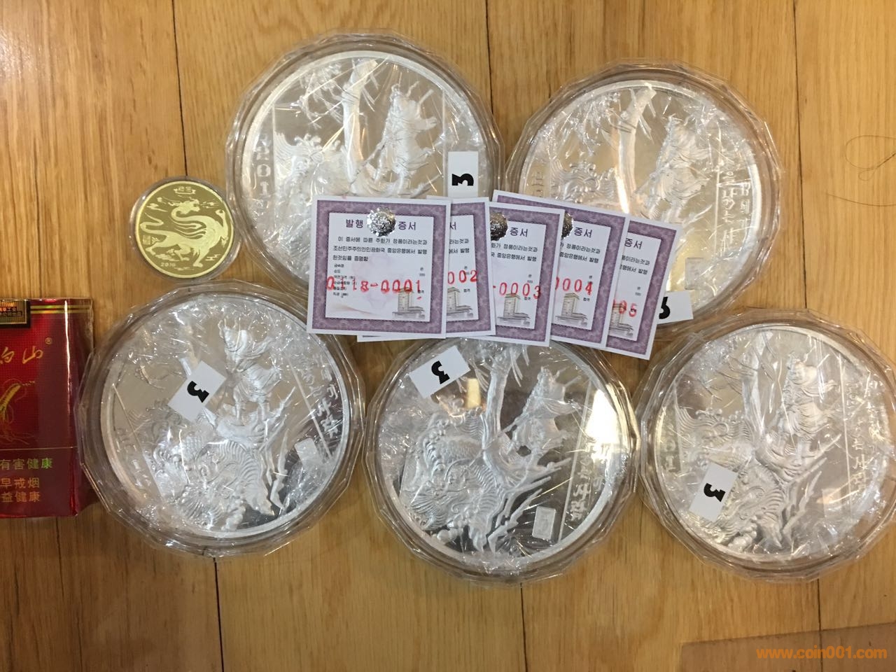 2、2015年 朝鮮國鳥-蒼鷹(2枚/套) 1盎司銀幣,裸幣440元/枚,可供40套,PCGS 68+68分,1200元/套,可供1套。