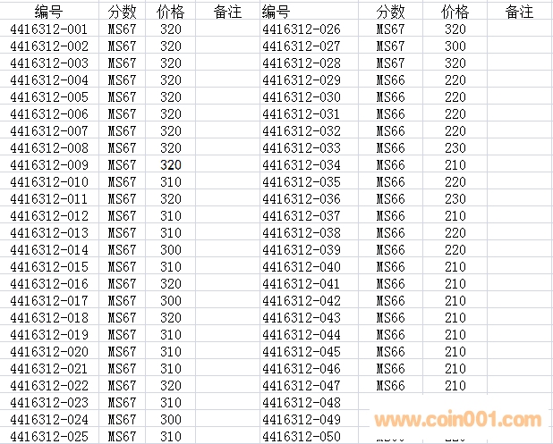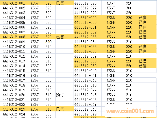 確認(rèn)-016~019連號(hào)MS67四枚。