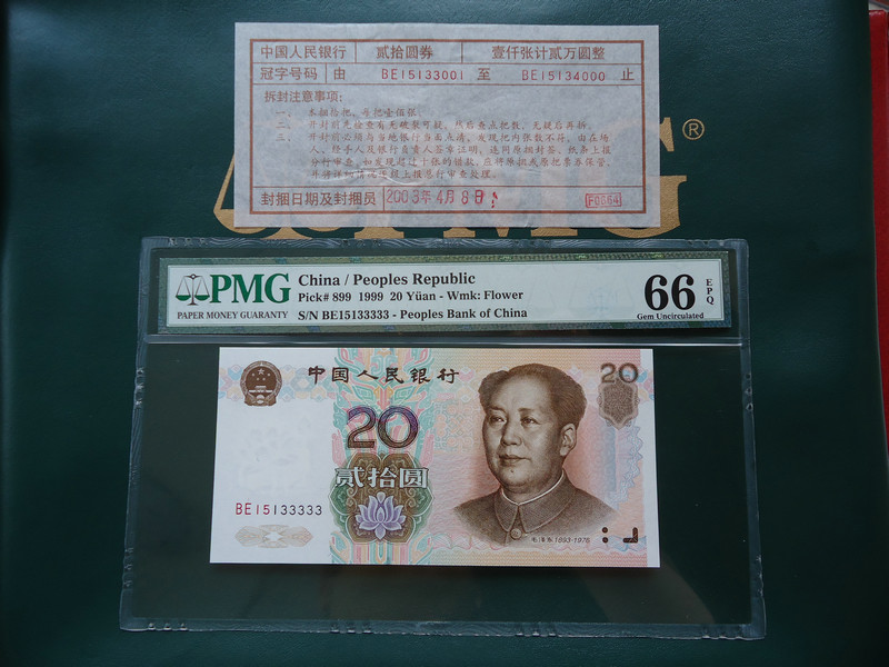 PMG 67分 CB 055 66666 售13800元 有紙質(zhì)流水簽!幣王的五同號 而且還是只有5+6的AB號!