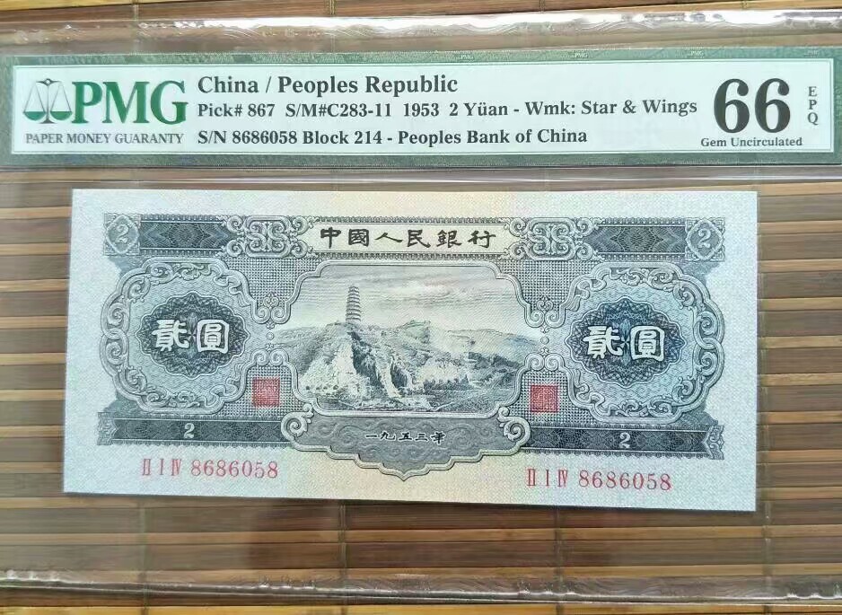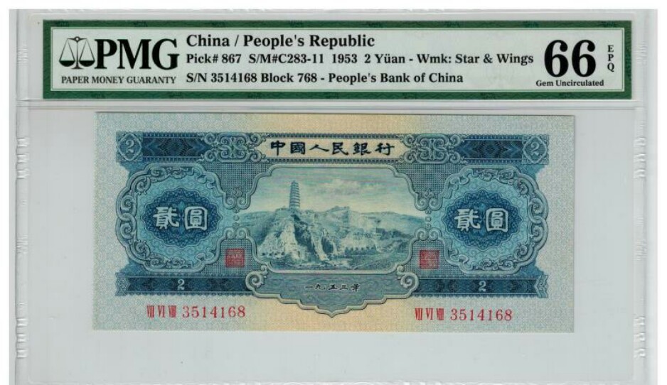 黃五PMG65E-6398232,售價3000元。