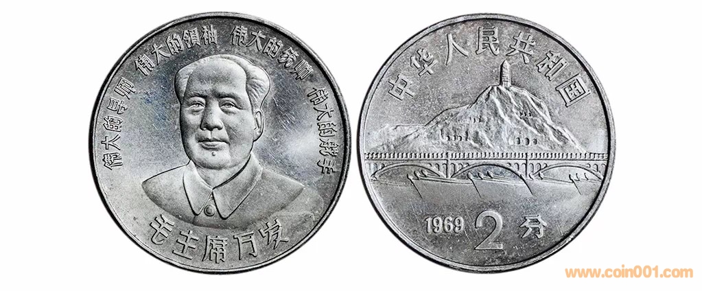 四枚一套的毛澤東像白黃硬分幣,比去年誠軒上拍的毛澤東像白紅硬分幣要顯得成熟一些,但也是1968年生產(chǎn),年號標1969年,目前沒有資料顯示上報到總行或者國務(wù)院。