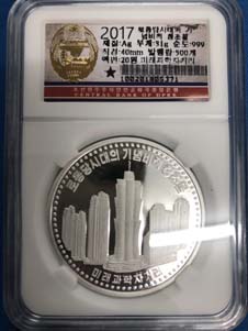 9.全新 2017年 朝鮮-勞動黨大紀念碑創(chuàng)造物 科學(xué)技術(shù)殿堂 紀念銀幣 31g999純銀
