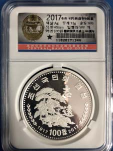 6.全新 2017年 朝鮮-國民會成立100周年 紀念銀幣 31g999純銀