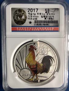 14.全新 2017年 朝鮮-生肖雞 彩色紀念銀幣 1oz999純銀