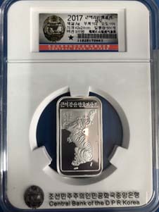 13.全新 2017年 朝鮮-槿域江山猛虎氣象圖 紀念銀幣 31g999純銀