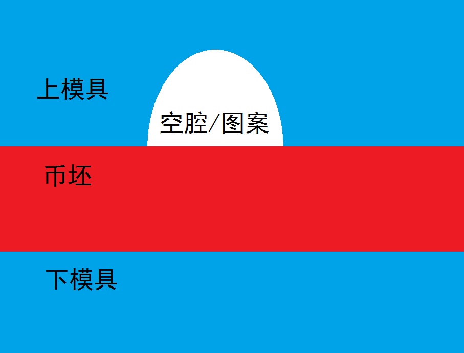 4. “經(jīng)過(guò)思考筆者認(rèn)為透打完全是另外一個(gè)過(guò)程形成的,跟力度和坯餅厚薄沒(méi)有直接關(guān)系。...所以,透打的成型,從力度和坯餅上找原因是緣木求魚(yú),根本原因還是要從模具上找,成幣幣面有凹凸,那就是因?yàn)槟>弑砻嬗辛藢?duì)應(yīng)的凸凹。”
