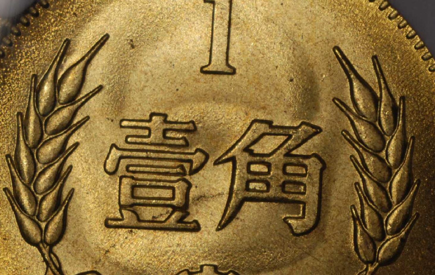 3. “透打部分即描邊內(nèi)部常常是幣的鏡面效果保留最好的部分,這也更引導(dǎo)我們視覺(jué)上區(qū)分出透打,分幣和長(zhǎng)城角幣整個(gè)幣已經(jīng)出現(xiàn)車(chē)輪光的情況下,這個(gè)正對(duì)著對(duì)面國(guó)徽的部分還往往保留著鏡面”