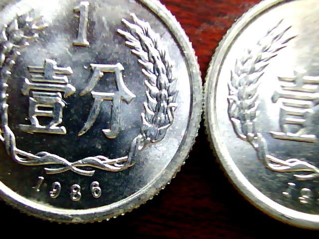 引用 引用第5樓小賴愛錢幣于2010-09-21 01:09發(fā)表的 :我這里還有一個(gè)新版別 1986年1分 我自己叫做豆芽版壹字下面的豆字的第一橫多了一個(gè)月牙和口字相連接了