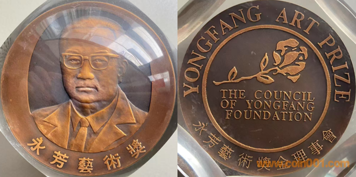1991年上幣制造,紫銅上色60MM。正面為永芳頭像,反面為主題文字。