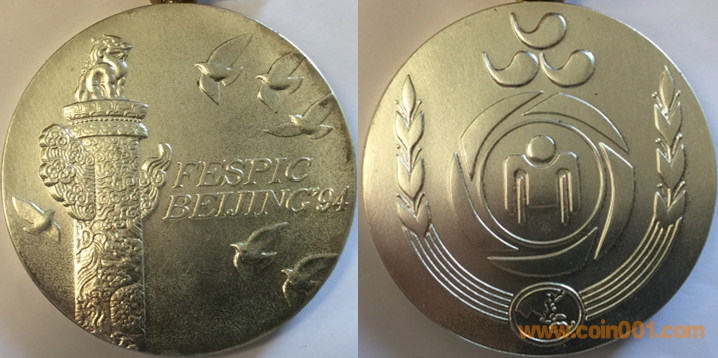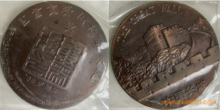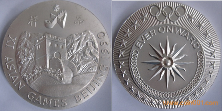 1990年上幣制造。紫銅鍍金普制(第一名)。紫銅鍍銀普制(第二名),紫銅上色(第三名以下)。三種版別均為60MM。正面為主題文字,反面為長城。