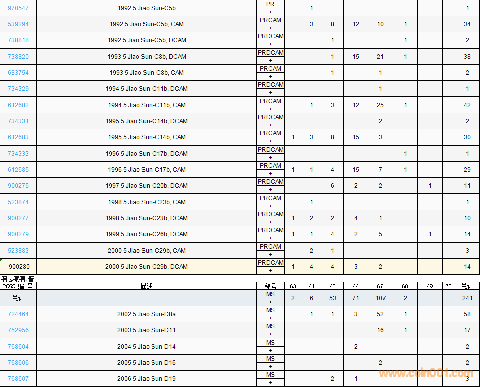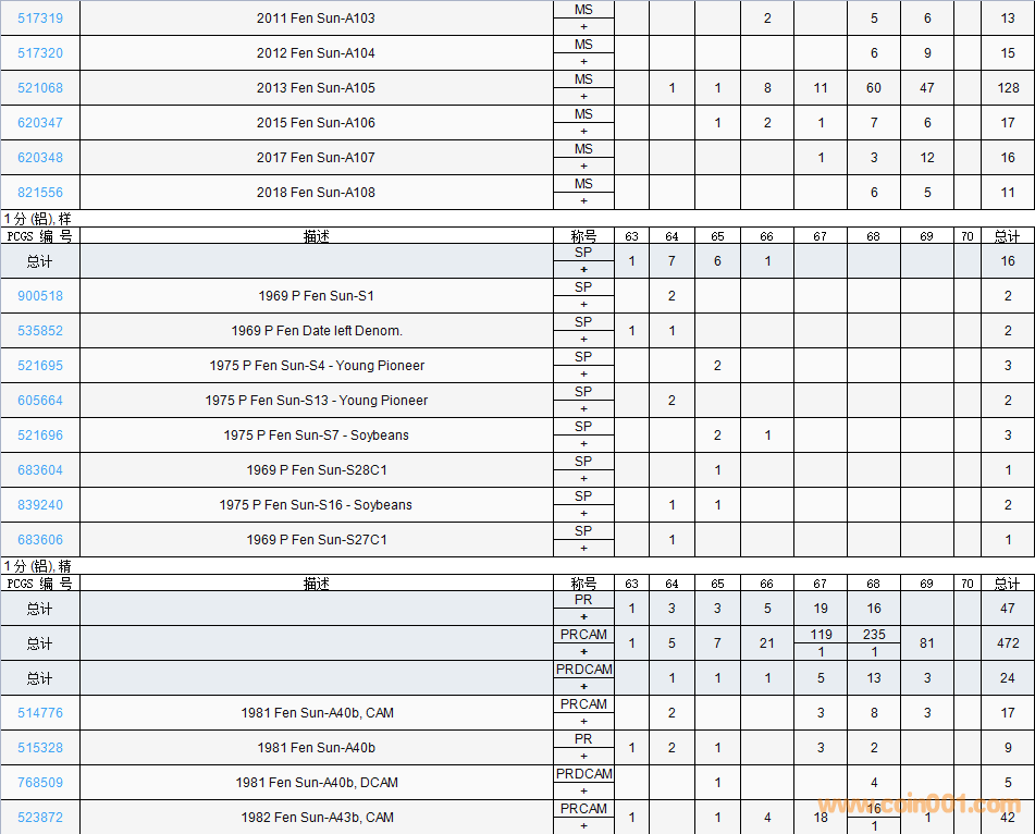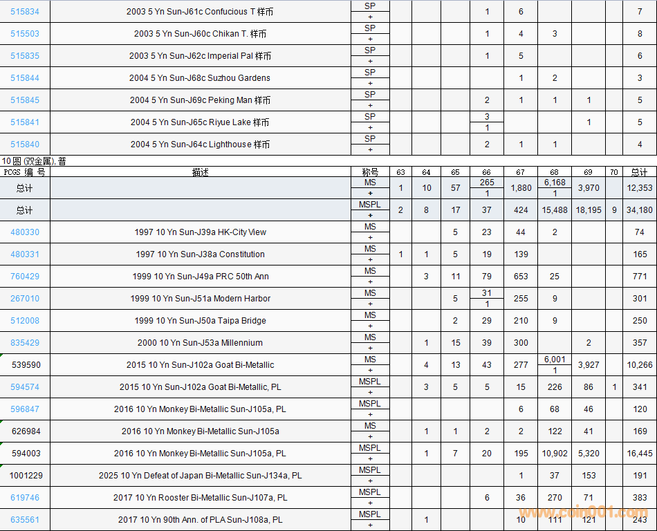 PCGS硬幣評(píng)級(jí)數(shù)量報(bào)告( ..