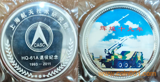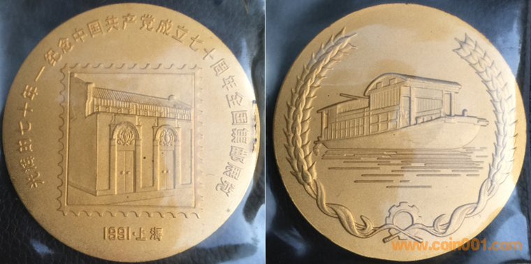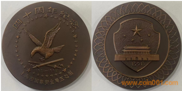 1991年上海造幣廠制造,紫銅上色、紫銅普制鍍金。正面為老鷹,反面為圖案。