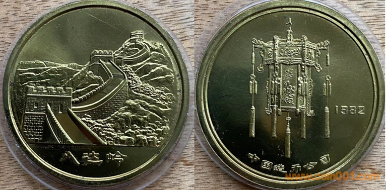 1982年沈幣制造,黃銅精制、黃銅普制。正面為長城,反面為宮燈。