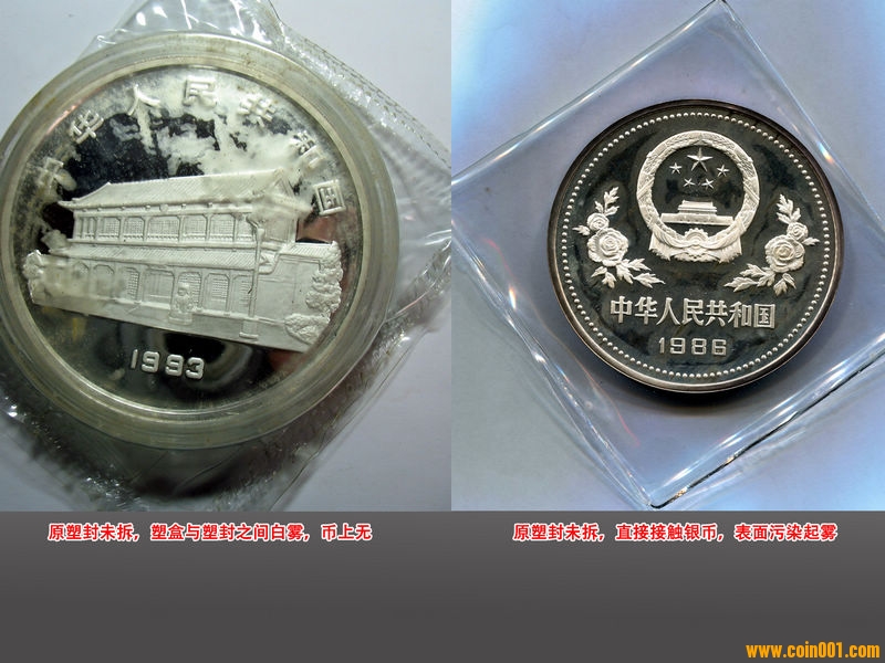 周衛(wèi)榮說,銀幣腐蝕,原因比較清楚,因?yàn)榘足y本身就易受腐蝕,因此,我們只是用上述方法做了簡單的分析,檢測結(jié)果:褐色銹蝕物為銀的氧化物和硫化物;白斑為氯化銀。氧化銀、硫化銀,主要由空氣中的腐蝕性物質(zhì)反應(yīng)生成;氯化銀主要由包裝材料分解物腐蝕生成。另外,電化學(xué)腐蝕發(fā)生時會與空氣中的顆粒物質(zhì)形成多種化合物,因而表面往往呈現(xiàn)多種色彩。這些也從金銀幣的儲藏環(huán)境即包括包裝材料和周圍環(huán)境氛圍(空氣)的檢測中得到了印證。在對金銀幣的內(nèi)外包裝材料檢測時,發(fā)現(xiàn)現(xiàn)行金銀幣的貼身包裝(軟硬兩種)為聚氯乙烯材料制成,而聚氯乙烯具有腐蝕性;現(xiàn)代都市,隨著工業(yè)化程度的提高和汽車擁有量的與日俱增,空氣污染也比較嚴(yán)重,環(huán)境空氣中較高濃度的有害氣體(腐蝕性氣體)的存在,同樣會對金銀幣產(chǎn)生腐蝕作用。