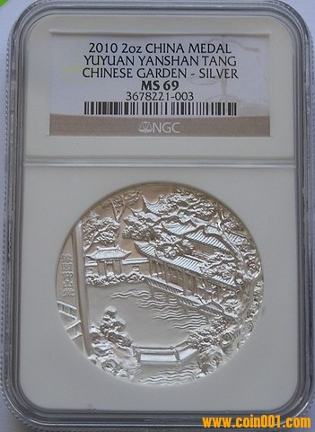 去年初秋一個偶然的機會,在著名現代幣章收藏家黃瑞勇教授主持的上海東方國際第一屆中外章牌專場拍賣會上,我邂逅了它---中國古典園林豫園銀章,竟然讓我生出了一生與之廝守的渴望。章面上悠悠的風情與這幽幽的風雅水乳@交融,讓人心境空明,好想化作園中石,一起感受歲月的天地乾坤,忘卻紅塵的紛紛擾擾。