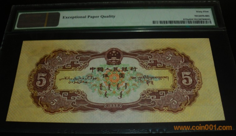 PMG66.65分.二版海鷗5元. ..