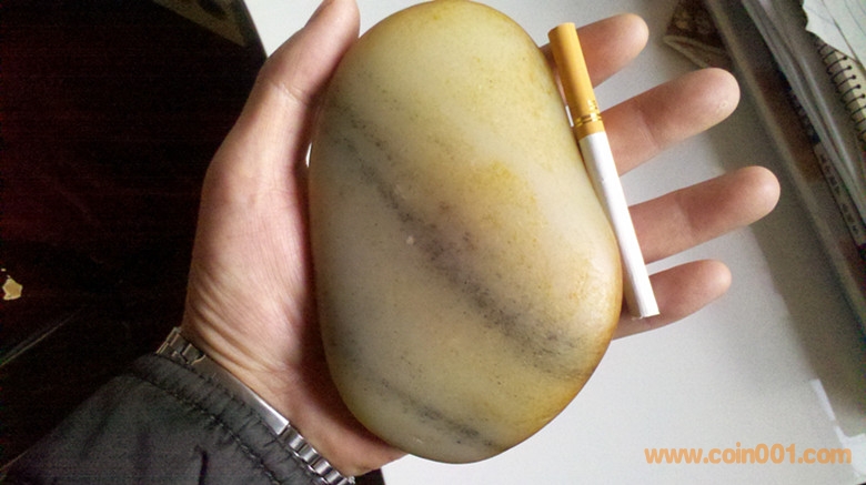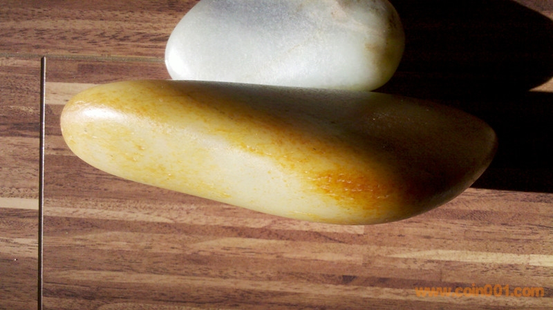 此塊正宗新疆和田玉是天然的一塊大籽料,重量630克,長130X85X35MM,白玉底帶青花,全身汗毛孔清晰是新疆和田玉真籽料,但色懷疑有染過(這個對玉質(zhì)沒有影響)。此玉質(zhì)很緊密很細(xì)膩很油潤,打燈都難見結(jié)構(gòu),此籽有細(xì)裂,幾乎都在邊緣上,不影響雕刻,十籽九裂屬正?!,F(xiàn)這么大一塊外形較完美的好品質(zhì)籽料實(shí)屬難見了。請有實(shí)力的愛玉者前來洽談。圖片是在無自然光和有自然陽光下拍攝的。實(shí)力價20000元。