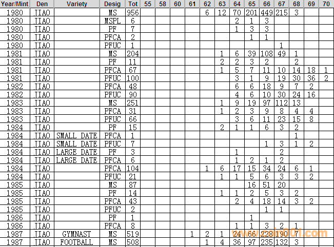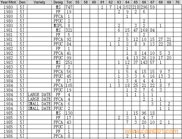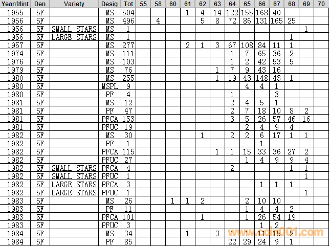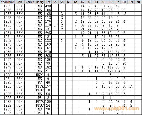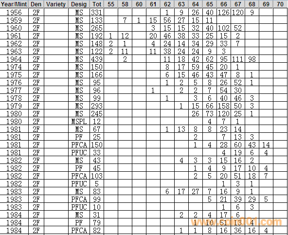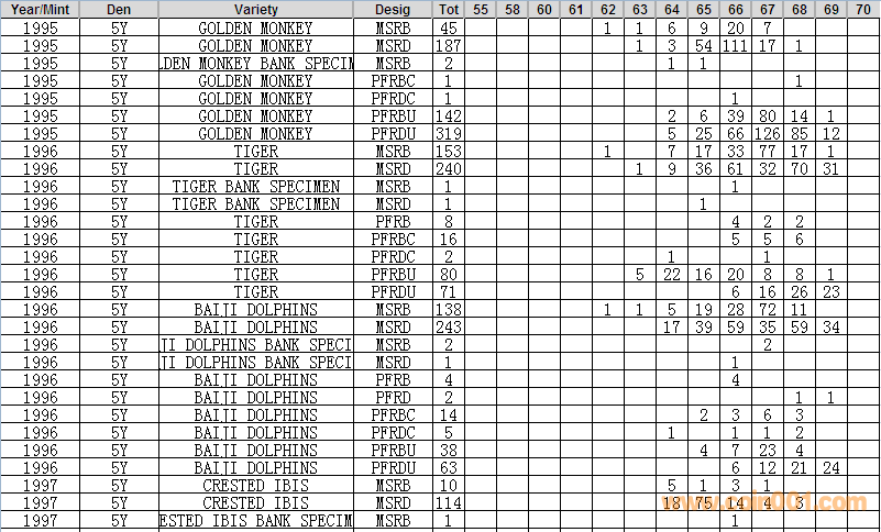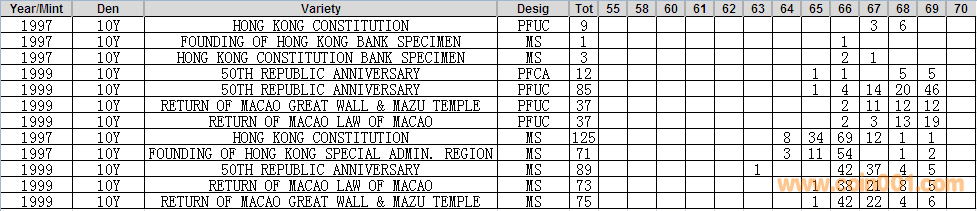 NGC硬幣評級分數(shù)分布 ..