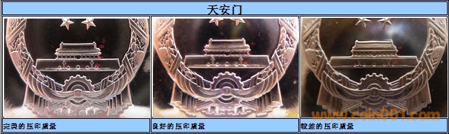 備:這里我要說明普制幣與精致幣由于工藝不一致,對于壓印的質(zhì)量也存在明顯的區(qū)別,我們不能采用相同的判定標準