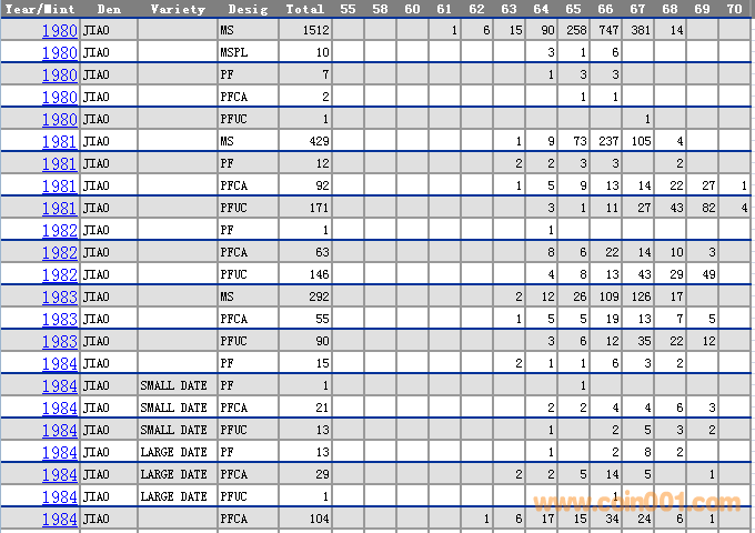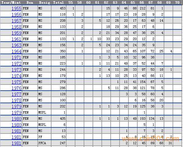 NGC硬幣評級分?jǐn)?shù)分布 ..