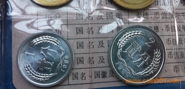 80藍本原封無破損,燙金完整,幣的底板好,無黑斑,無劃痕,5角有不明顯的一條鑄印紋。81精制原封,原冊,無劃痕,無氧化黑斑,黑點。一般81精制霧化都比較重的,這本霧化是及輕微甚至無霧化,是81精制中不錯的一套。