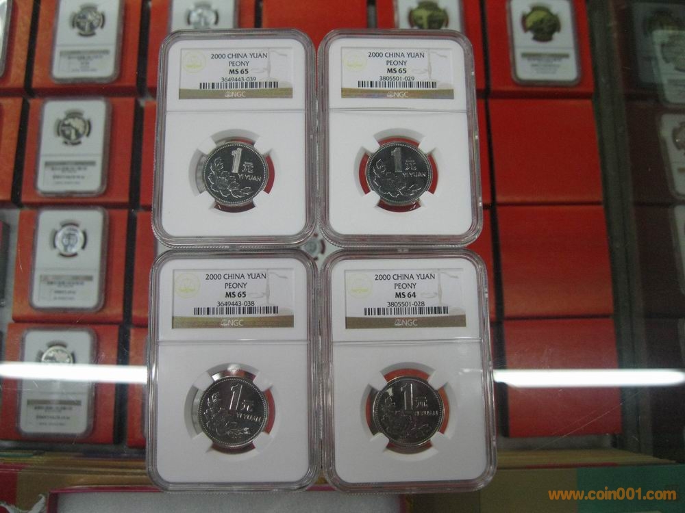 普制2000年牡丹NGC評級幣(65分)3枚,每枚價格800元。 普制2000年牡丹NGC評級幣(64分)就1枚,價格700元。