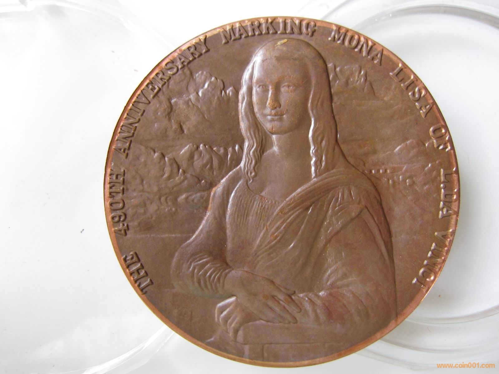 回到那天的盧工地攤,除了這枚章以外,還有一枚達芬奇創(chuàng)作蒙娜麗莎四百九十周年的章十分吸引我。話說普通的這枚章很常見,只有300多元的價格,但是地攤上的這枚章確十分的特別,在章的最外面有一圈很均勻的淺顏色環(huán),見圖8,9,10 。這讓我感覺到有些蹊蹺,一問價格,只有小幾百,毫不猶豫的買下了?;丶乙院?,我和我原來的一枚達芬奇章對比了一下,發(fā)現(xiàn)顏色明顯較淡,見圖11 。對于最外圈光亮的一圈百思不得其解。我便把照片發(fā)給幾位大銅章的老前輩詢問,結(jié)果都不知原因。一個月以后,北京孫老師來滬和我一起去上幣學(xué)習(xí),我把這枚達芬奇章帶去,請幾位上幣的專家鑒賞,在幾位專家仔細查看了許久之后,他們得出了統(tǒng)一的結(jié)論。此枚達芬奇章,是用老坯餅做的,在沖壓之前,做了一道光邊的工藝,這個和流通硬幣的工藝一樣。老坯餅原來就有氧化,光邊之后把內(nèi)部沒有氧化的內(nèi)心翻出,然后再沖壓,就形成了邊緣一圈均勻的淺色紫銅本色。然后這枚章也沒有經(jīng)過最后的上色處理,就直接流出來了,他們猜想是造幣廠內(nèi)部職工手里的東西,類似于未上色的半成品。第二天上幣的專家還拿出了光邊的圖紙讓我們看,我們進一步了解了光邊的工藝。經(jīng)過這么一解釋,籠罩在我頭上一個多月的疑團解開了,同時還學(xué)到了造幣廠的工藝,真是受益匪淺。