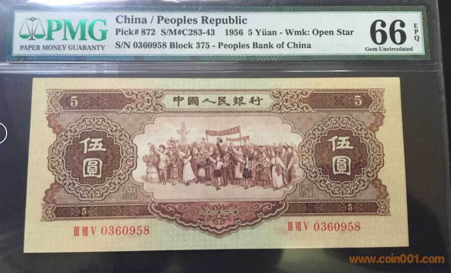 二版黃五元 無(wú)47的五連號(hào) 375冠