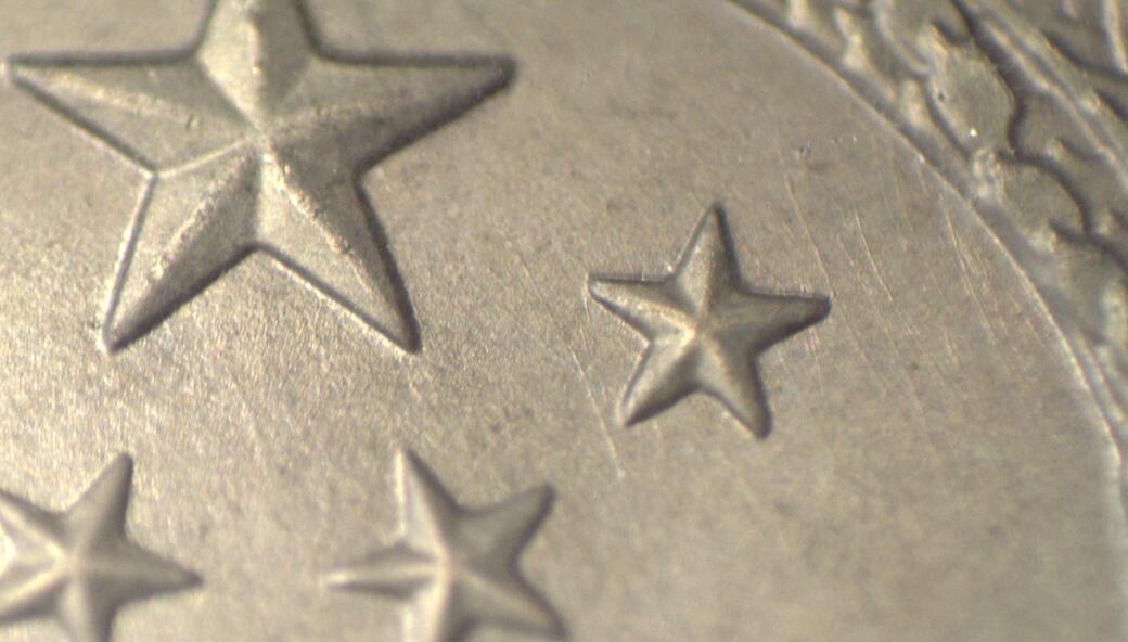 圖6:小黑本長(zhǎng)城幣正面模具損傷痕跡