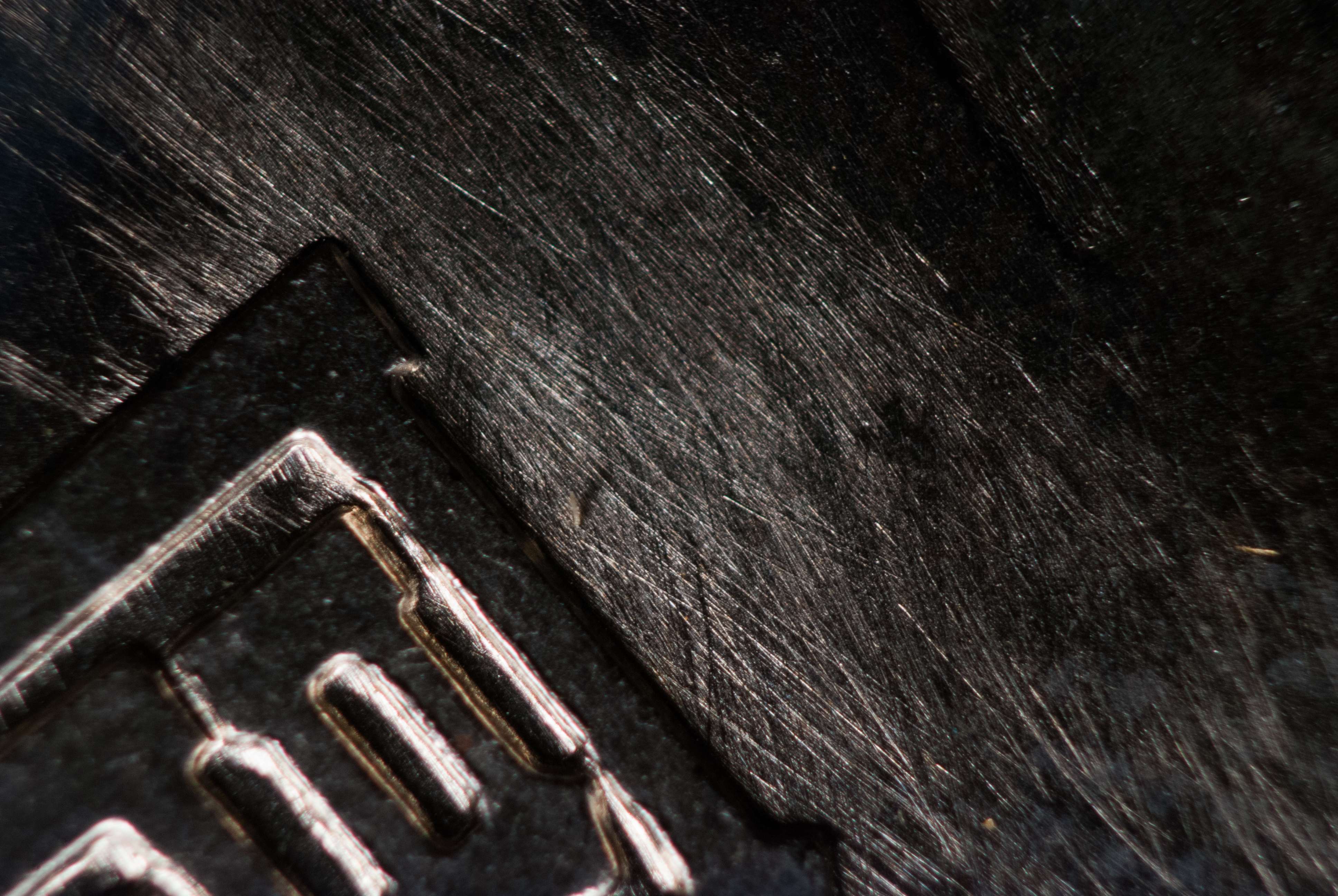 圖2:小黑本長(zhǎng)城幣國徽面橫向拋光痕(放大圖)