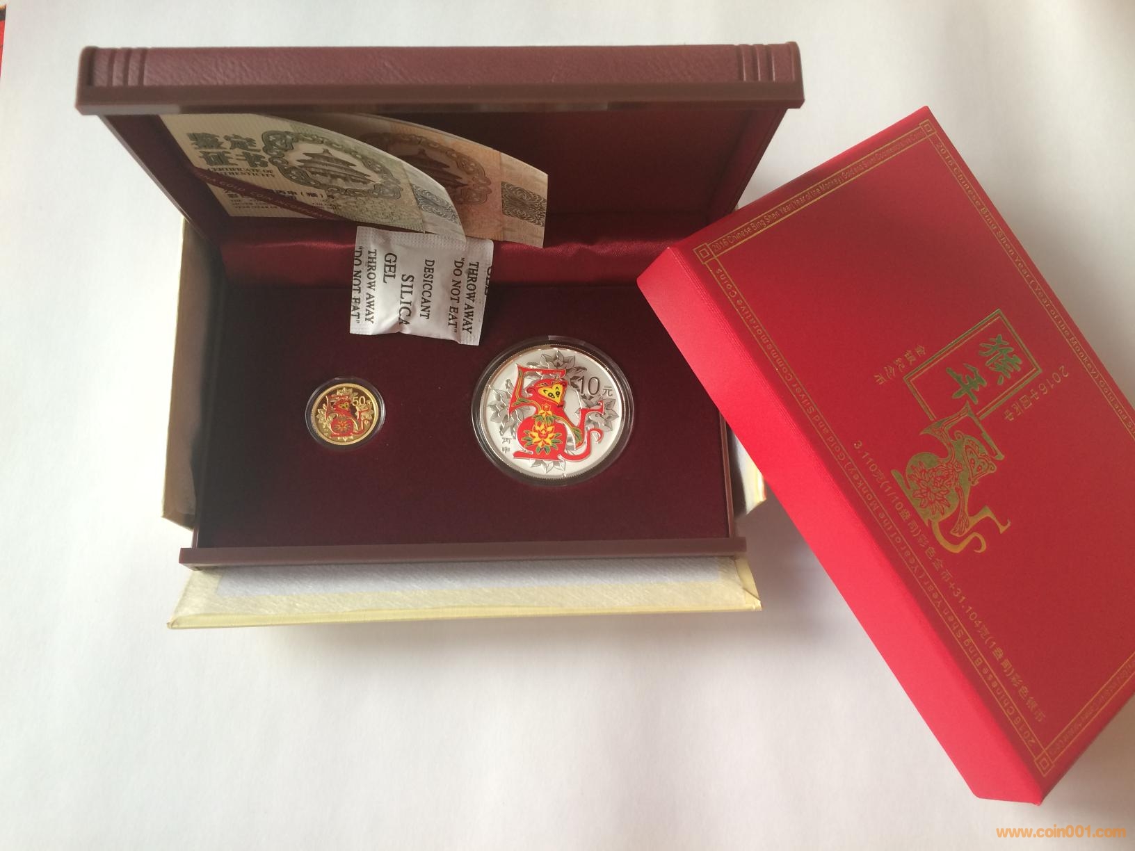 1、2016年生肖猴彩色金銀套幣,包裝證書齊全!