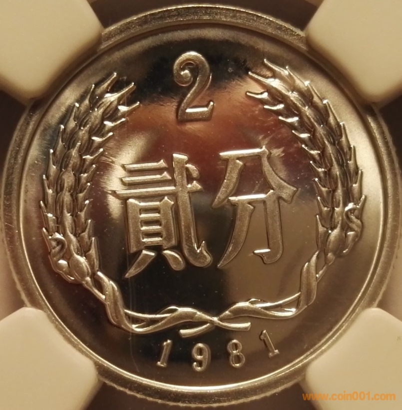 下面是是1枚PF69的1981年精致2分,這枚精制分幣一面有明顯的擦痕,擦痕影響到了視覺效果