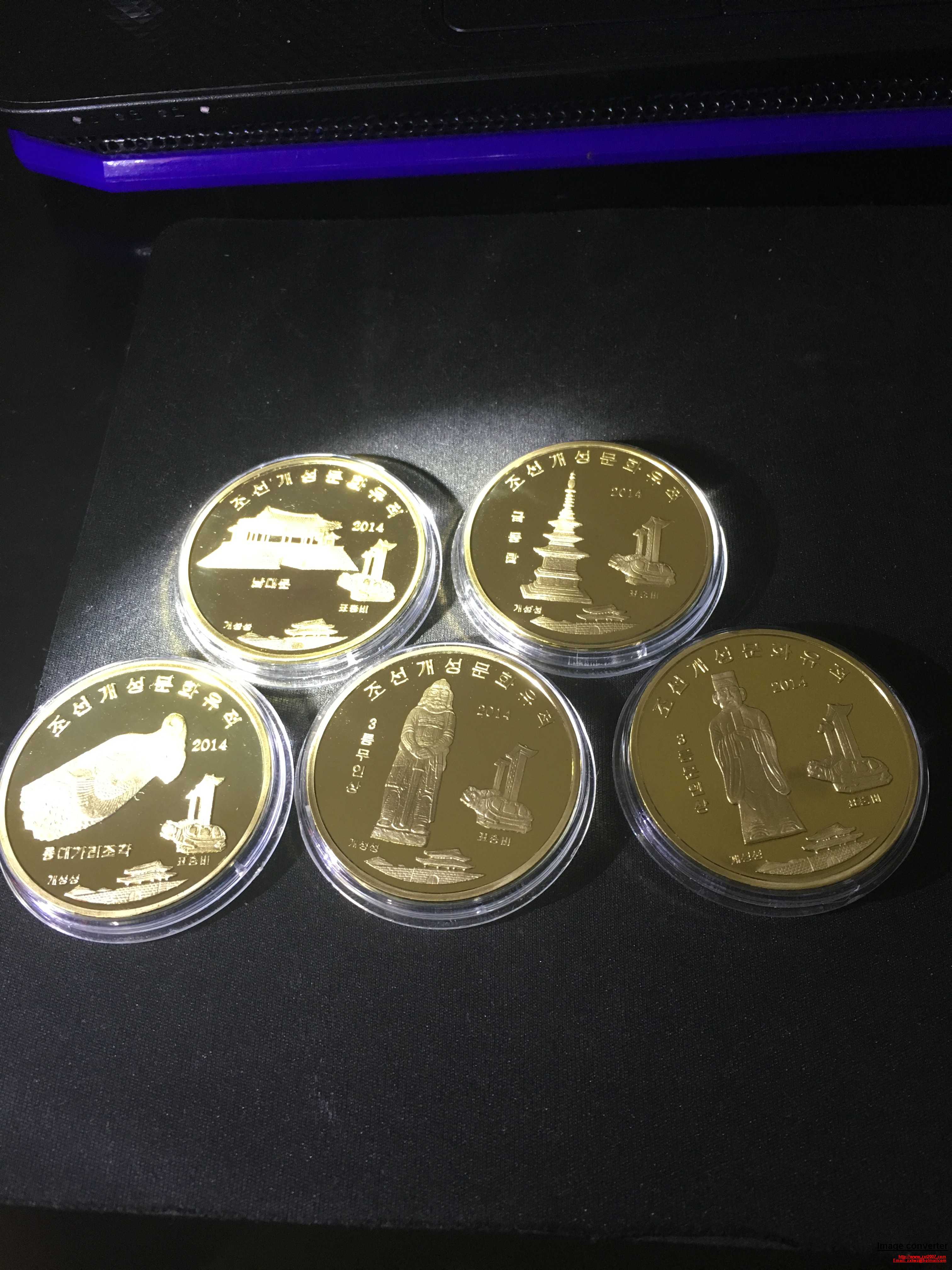 4、2014年開成文化遺產(chǎn)精制銅幣一套五枚,225元一套。
